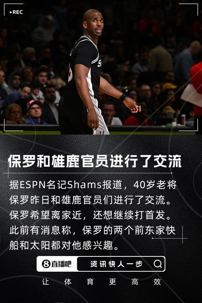 07月04日讯 ESPN名记Shams Charania在《SportsCenter》中透露,40岁老将克里斯-保罗昨天和雄鹿官员们进行了交流,快船和太阳也对他感兴趣。