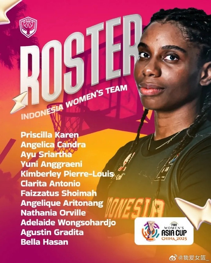 今天上午,印度尼西亚女篮公布了球队参加亚洲杯的12人大名单,球员当中包括了奥古斯丁-格拉迪塔、尤尼-安格拉埃尼这样的90后中生代球员,也包括了法扎图斯-绍伊玛、阿德莱德-旺索哈乔这样的00后。金伯利-皮埃尔-路易斯将继续以归化球员的身份替球队出战,2023年亚洲杯B级赛中,她场均可以拿到18分和12.8篮板,是球队进攻一端颇为倚重的明星球员。