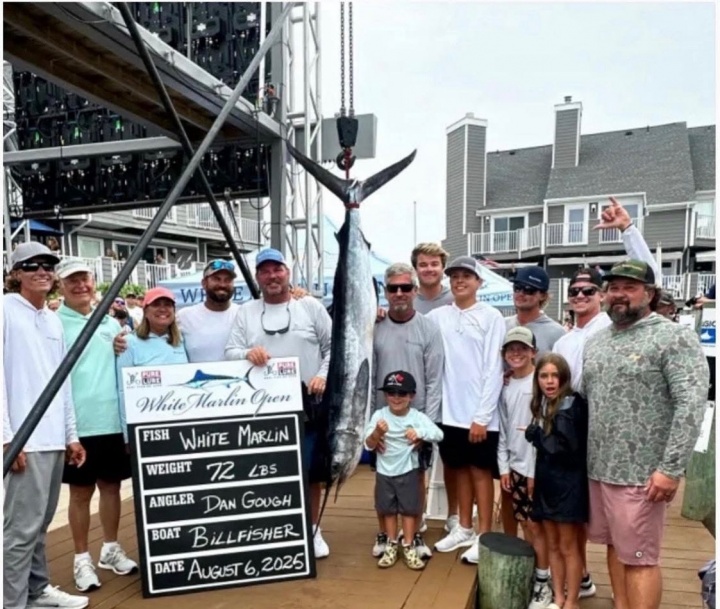 乔丹带着二儿子马库斯一起参加,捕获最大的鱼仍是10号那天的71磅(32公斤)白马林鱼。