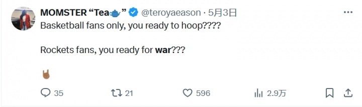 追梦继续回复:“有没有人能告诉一下伊森妈妈,她在他们输球之前就说过要开战了。”