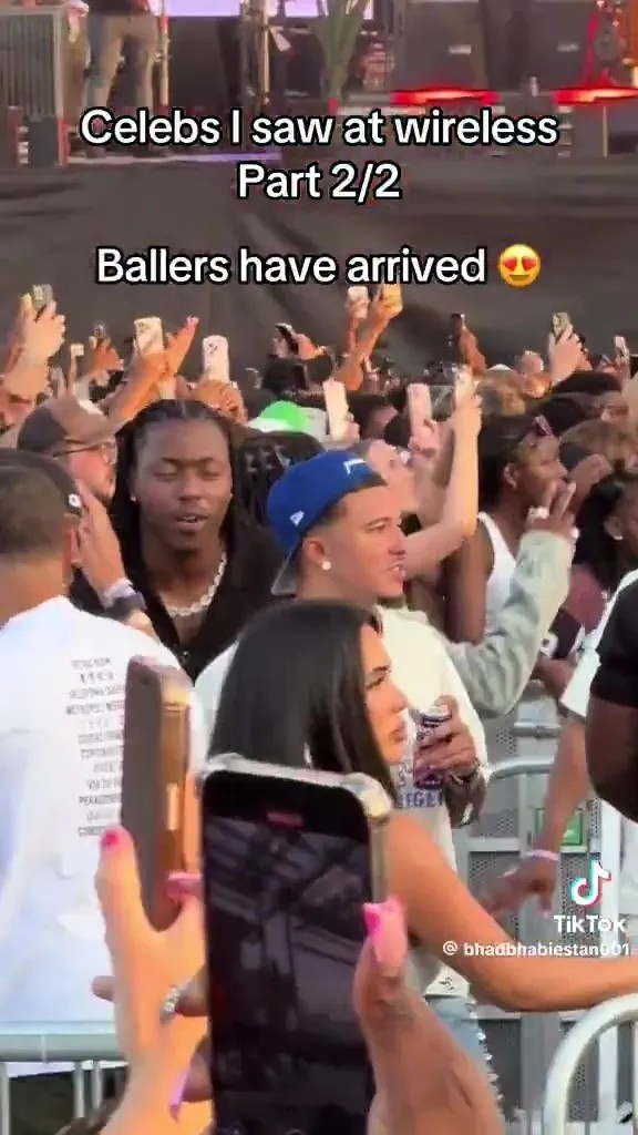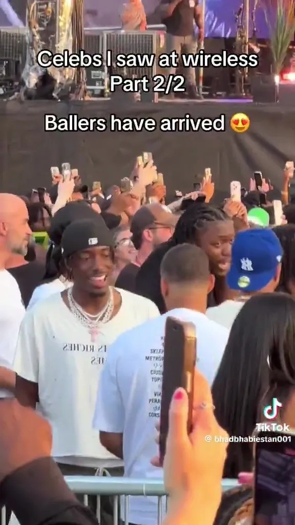 周日两人共同观看了Drake的40分钟演出,此举引发球迷强烈不满。画面中马杜埃凯身着白色上衣搭配黑色棒球帽,桑乔则穿着同色系上衣配蓝色帽子。