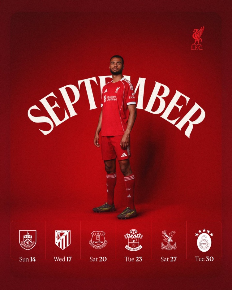 9月4日讯 利物浦官方社媒晒球队本月赛程,本月球队将有三场联赛,两场欧冠以及一场联赛杯的比赛。
