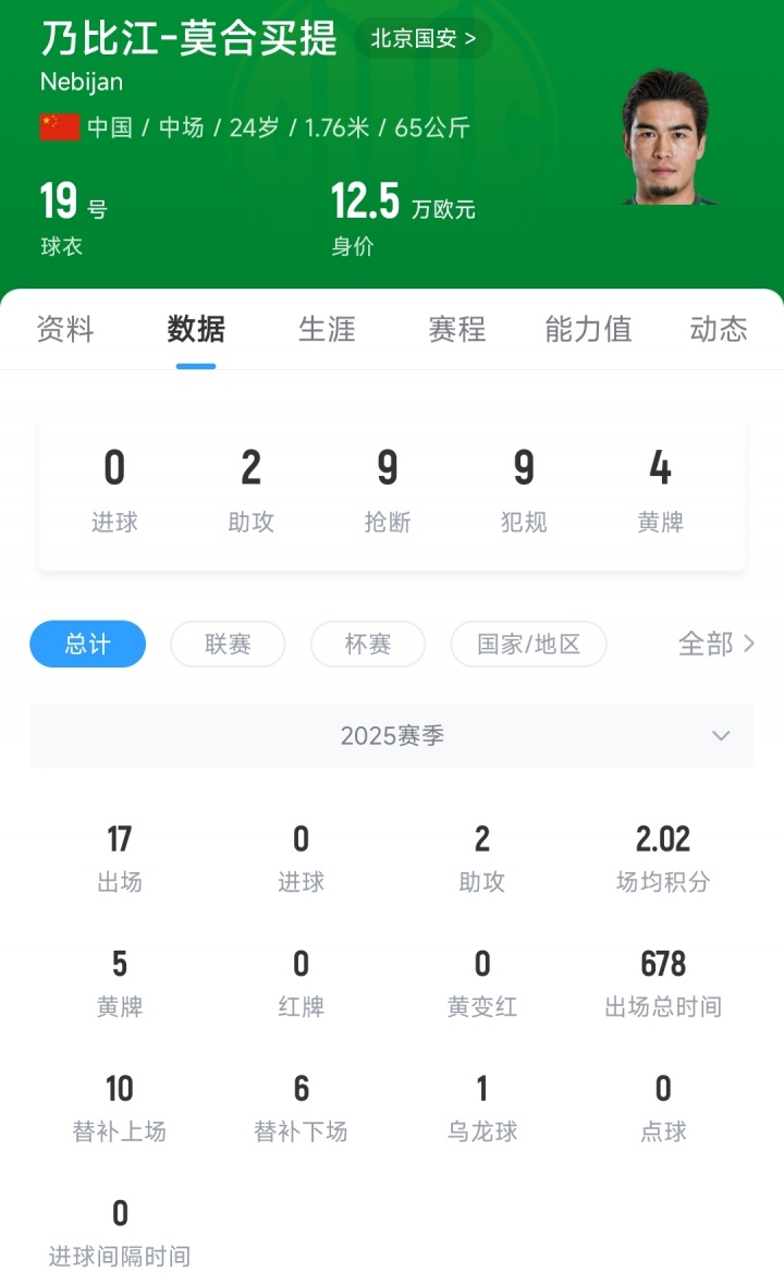 09月20日讯 北京国安公布球员伤情公告,球队中场球员乃比江大腿肌肉受伤,康复时间不低于4周。